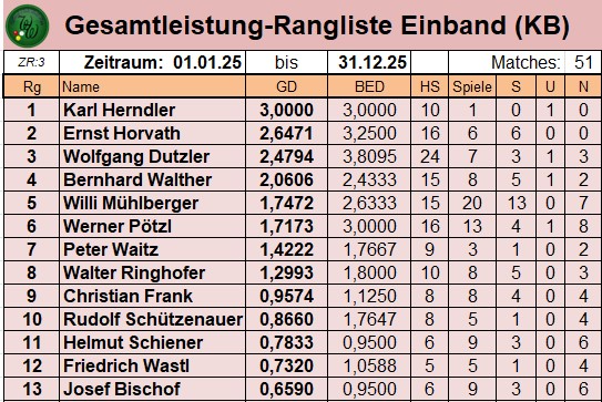 | 51 | 02.12.2025 | RL | Horvath | Dutzler | 16 | 7 | 78 | 37 | 24 |