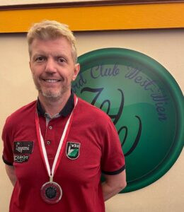 Wolfgang Dutzler belegt nach der Cadre auch in der Wiener Landesmeisterschaft in der Freien Partie (Matchbillard) – ausgetragen im BWW – hinter Franz Trawniczek den zweiten Platz. Im entscheidenden Spiel gegen Franz muss sich Wolfgang leider klar mit 57:125/16 geschlagen geben. (Details folgen).